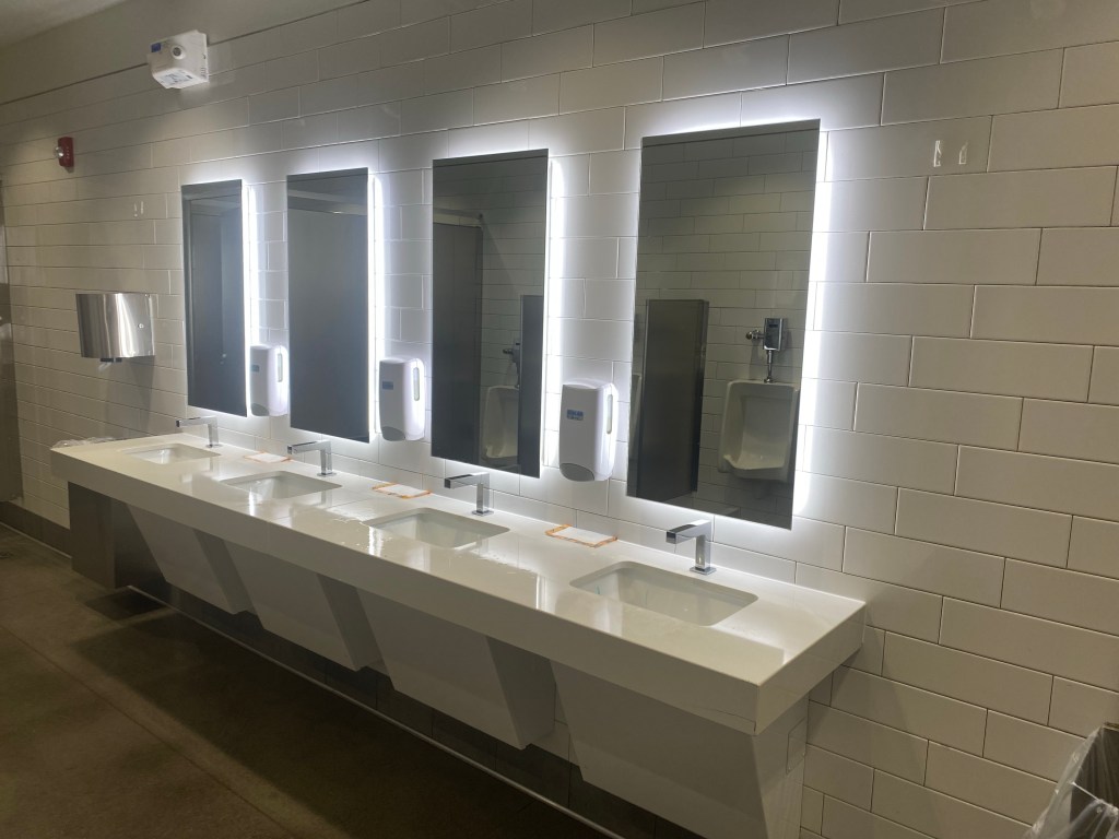 and opens up on it. The Regen sprays over 100 projectiles per second into the closed door and frame chewing them up. A woman screams and hit the floor. Blood streams from the stall. It runs fast on the floor then slows. Lottie’s notices Jody crawling backwards on his back towards the sink area still while pointing his gun. Her attention is on the entrance now.